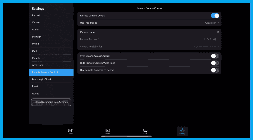 1️⃣ Open Settings → Remote Camera Control